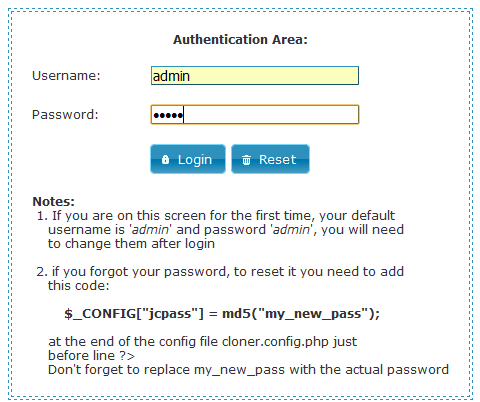 При входе в настройке плагина у Вас появится окошко, в которое нужно ввести логин и пароль, по умолчанию логин и пароль: admin, admin.