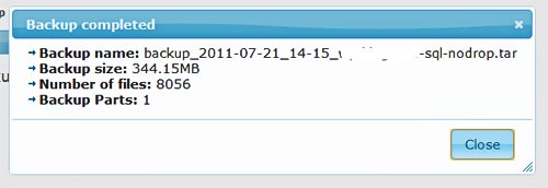 После завершения бэкапа, у Вас будет всплывающая подсказка, в которой Вы увидите название файла и путь, где он лежит, так же размер файла.