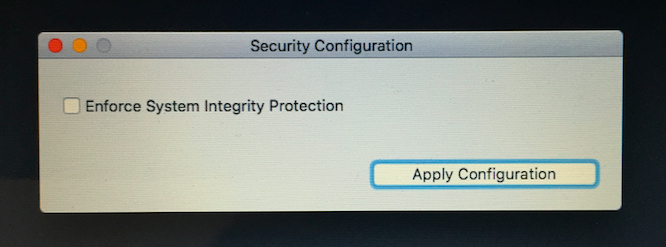Modify the System Integrity Protection configuration. All configuration changes apply to the entire machine.