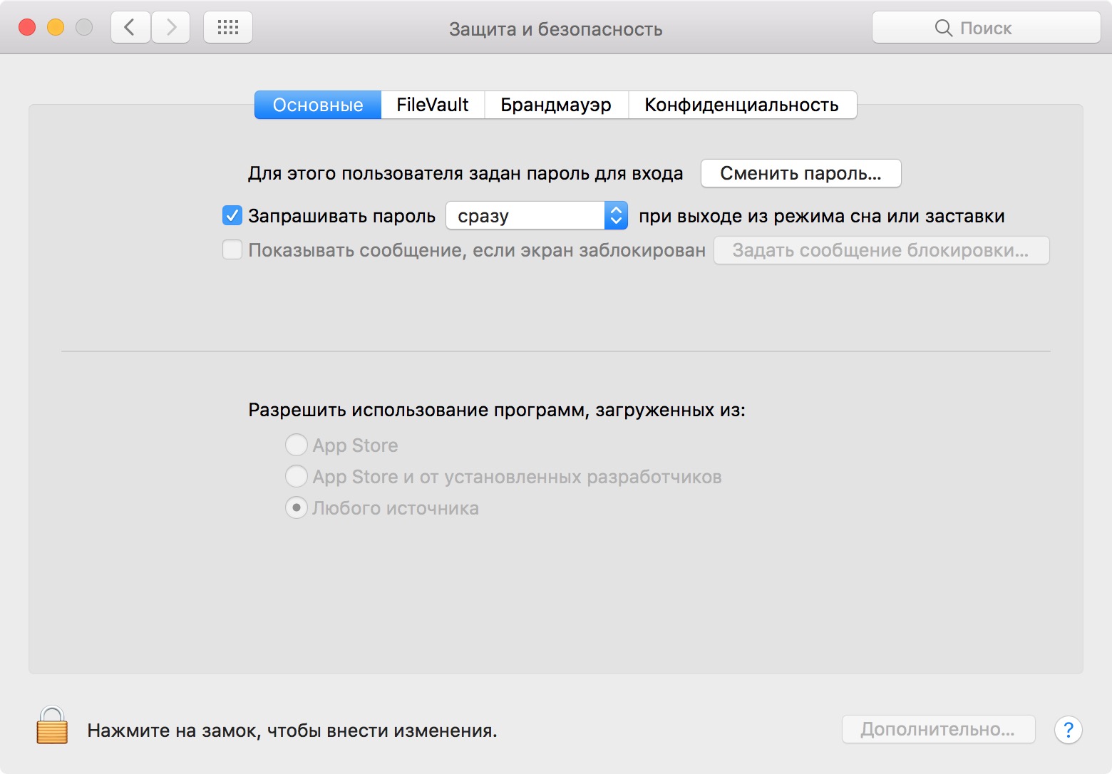 Разработчики многих полезных приложений не являются «установленными» или не распространяют свои приложения при помощью App Store для Mac (а кого-то не пускает сама Apple). Однако если не разрешить установку программ из любого источника, вы не сможете ими пользоваться. В OS X El Capitan этот пункт в меню «Защита и безопасность» был, однако в macOS Sierra исчез. Благо не бесследно.